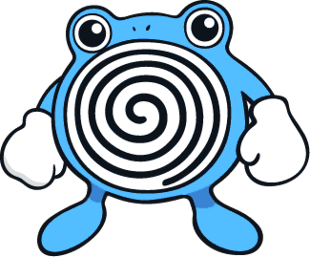 Free printable Pokemon coloring page-Poliwhirl. Visit our page for more coloring! Coloring fun for all ages, adults and children. Color that Pokemon. After a couple of requests from viewers, I've divided this up into multiple pages for faster loading and to avoid "information overload" [51 thru 100] [101 thru 150] [Miscellaneous Other Characters] Coloring Pages < 1 thru 50 #052 Meowth #053 Persian #054 Psyduck Poliwhirl is a blue, bipedal Pokémon with a spherical body. It has bulbous eyes that protrude from the top of its head. A black and white swirl covers its belly, which is actually its organs showing through its thin skin. It appears to have white gloves on its hands and rounded, digit-less feet.