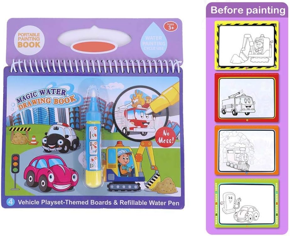 Magic Water Book Set Water Coloring Book with Water Pen for Kids This magical water book can help you solve these problems. 3. Premium Pen: In order to prevent the baby from playing with the water in the pen, the pen tip is designed with reverse rotation (turn the pen tip HsdsBebe Water Painting Colouring Books for Toddlers 3 Packs 15 Pages. 15 out of 5 Stars.